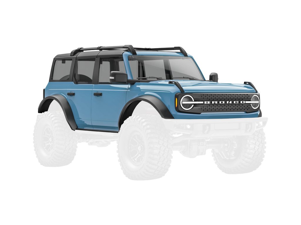 Traxxas karosérie Ford Bronco Area 51, pro RC model auta TRX-4M. Bez-sponková karoserie v měřítku 1:18 z ABS, kompletní, včetně čirých oken, makety rezervního kola, lemů blatníků, bočních zrcátek a dalších detailů.
