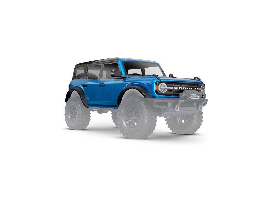 Traxxas karosérie Ford Bronco 2021 modrá - kompletní nabarvená. Určeno pro RC model Traxxas TRX-4 Ford Bronco 2021 nebo jiné modely TRX-4 s rozvorem 324 mm / konverzní sadou a s instalovanými blatníky pro bez-sponkové upínaní karoserie.
