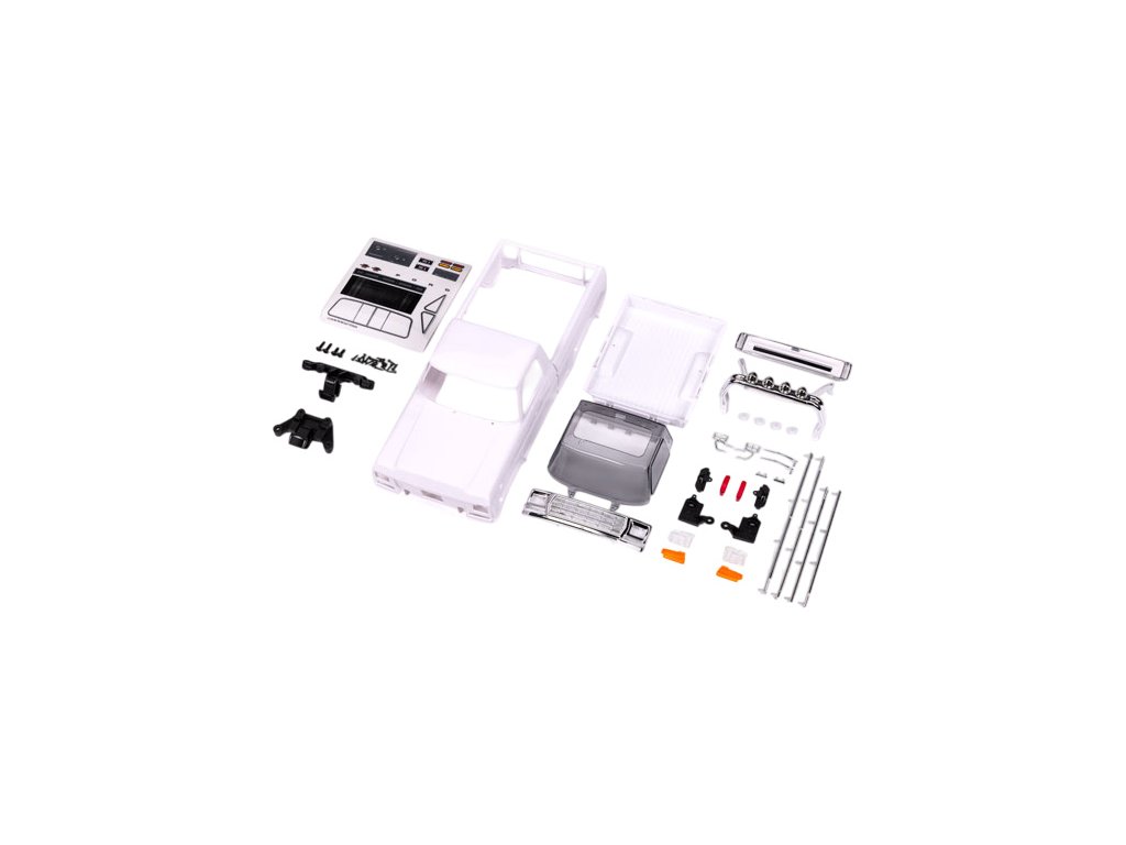 Traxxas karosérie Ford F-150 1979 nenabarvená bílá, kompletní (nesestavená), pro RC model auta TRX-4M s delším rozvorem 162 mm (High Trail). Bez-sponková karoserie v měřítku 1:18 z ABS, včetně mřížky chladiče, zrcátek, klik dveří, ochranného rámu, stěračů, bočních lišt a dalších detailů. Vyžaduje přední a zadní nárazník TRA9834.