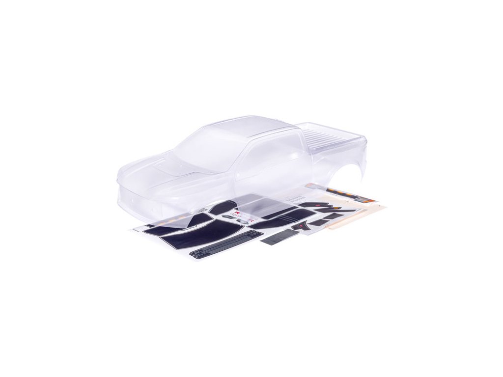 Karosérie Traxxas Ford F-150 Raptor R čirá, vyžaduje barvení. Včetně masky oken a archu samolepek. Určeno pro montáž na bezsponkový systém uchycení Traxxas. Není určená na modely Slash. Příslušenství karoserie se prodává samostatně. Vyžaduje držák TRA10124 a TRA10125.