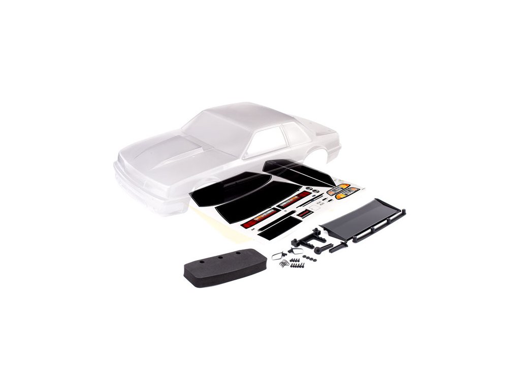 Traxxas oficiálně licencovaná karosérie Ford Mustang 5.0 - čirá, pro RC model auta Drag Slash. Nízký profil odlehčené karoserie s detailním provedením. Postranní zrcátka a zadní přítlačné křídlo. Včetně pěnového nárazníku a držáku.