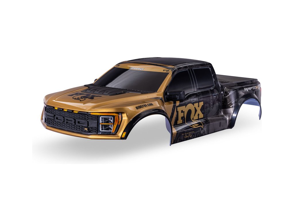 Karosérie Traxxas Ford Raptor R Fox SE kompletní. Včetně mřížky chladiče, zadního panelu kufru, bočních zrcátek, masky oken a archu samolepek. Určeno pro montáž na bezsponkový systém uchycení Traxxas - TRA10124 a TRA10125. Není určená na modely Slash.