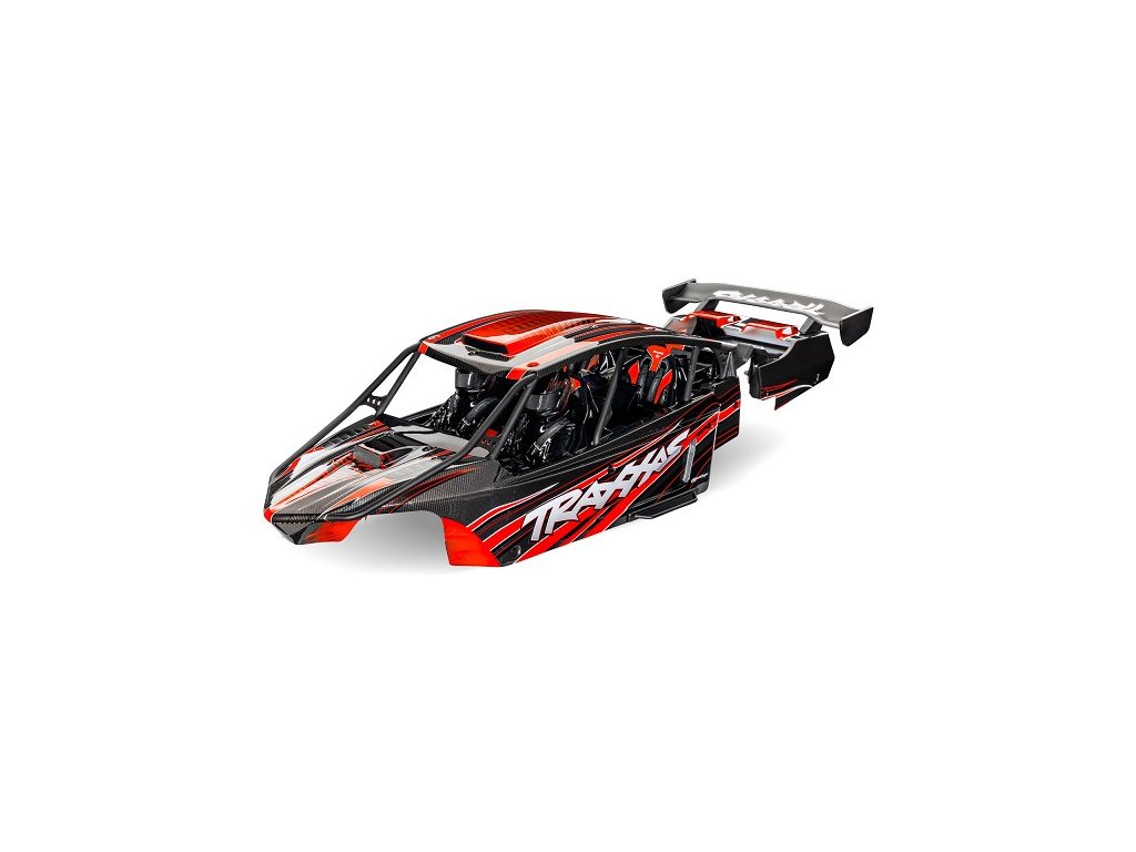 Traxxas karosérie Funco červená, hotová nabarvená karoserie s aplikovanými obtisky, včetně předních a zadních západek bezsponkového systému, vč. vnitřního rámu a interiéru.