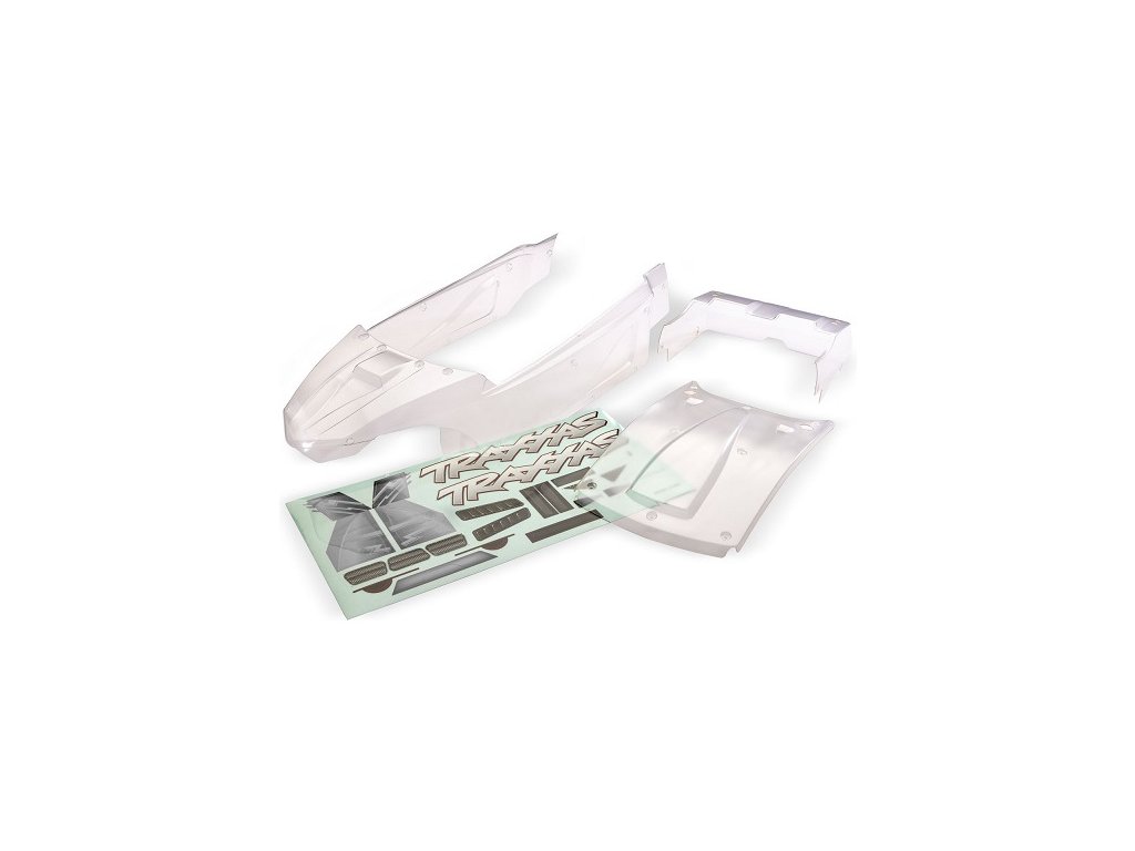 Traxxas karosérie Funco čirá, vyžaduje barvení, předem ořezaná, včetně archu samolepek. Pro dokončení vyžaduje vnitřním rám TRA10912 a interiér TRA10914.