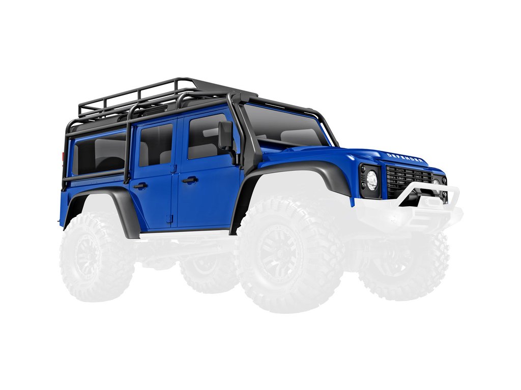 Traxxas karosérie Land Rover Defender modrá, pro RC model auta TRX-4M. Bez-sponková karoserie v měřítku 1:18 z ABS, kompletní, včetně čirých oken, makety rezervního kola, kanystrů, heveru, lemů blatníků, bočních zrcátek a dalších detailů.