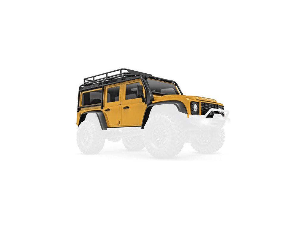 Traxxas karosérie Land Rover Defender okrová, pro RC model auta TRX-4M. Bez-sponková karoserie v měřítku 1:18 z ABS, kompletní, včetně čirých oken, makety rezervního kola, kanystrů, heveru, lemů blatníků, bočních zrcátek a dalších detailů.