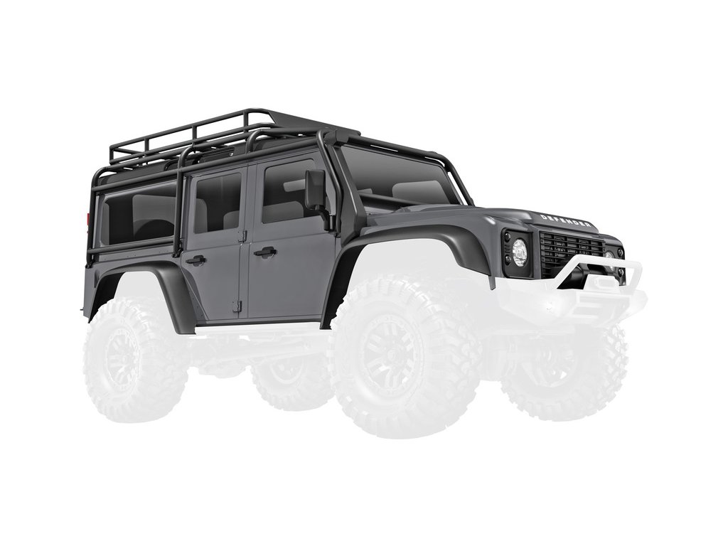 Traxxas karosérie Land Rover Defender stříbrná, pro RC model auta TRX-4M. Bez-sponková karoserie v měřítku 1:18 z ABS, kompletní, včetně čirých oken, makety rezervního kola, kanystrů, heveru, lemů blatníků, bočních zrcátek a dalších detailů.