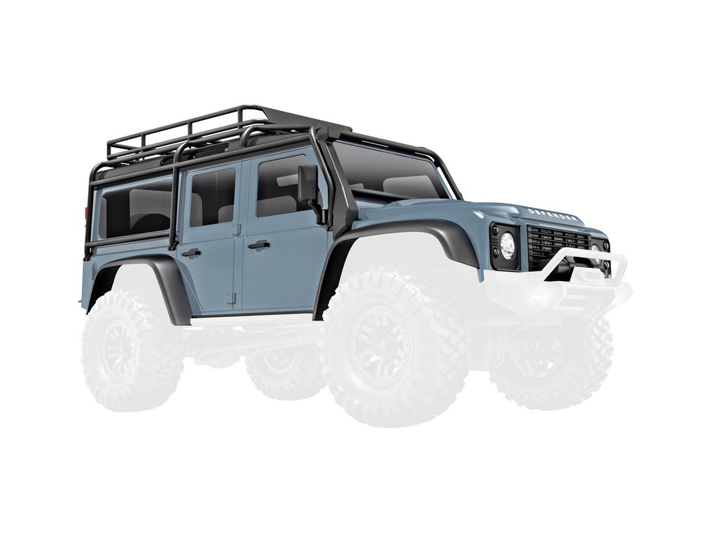 Traxxas karosérie Land Rover Defender světle modrá, pro RC model auta TRX-4M. Bez-sponková karoserie v měřítku 1:18 z ABS, kompletní, včetně čirých oken, makety rezervního kola, kanystrů, heveru, lemů blatníků, bočních zrcátek a dalších detailů.