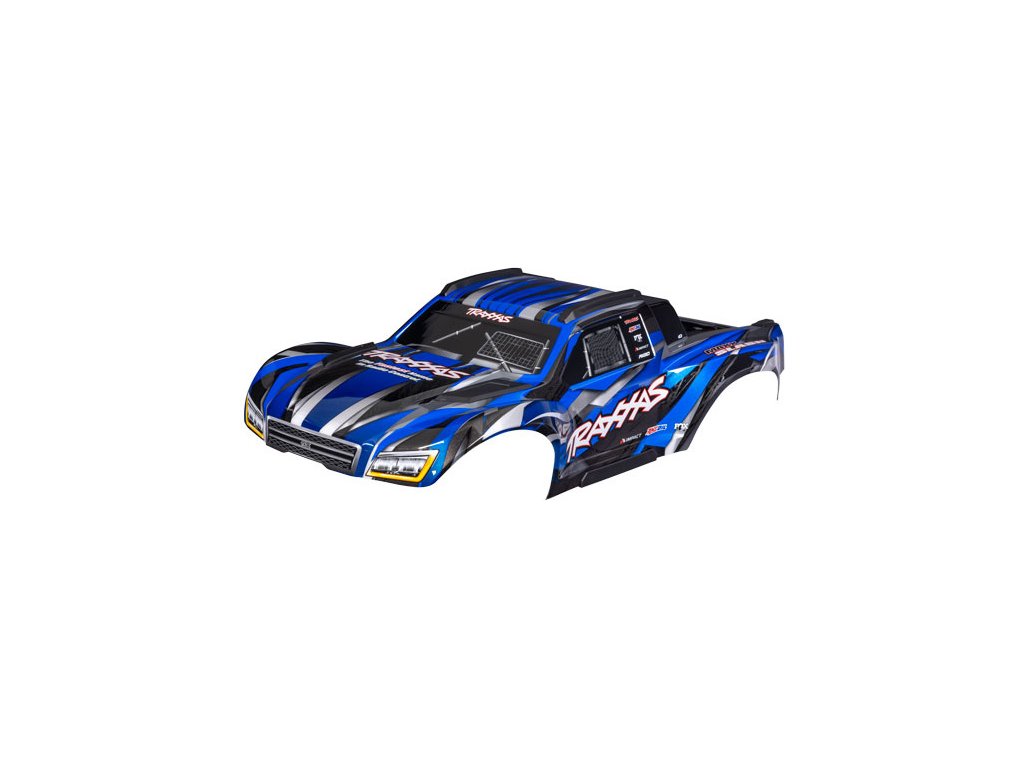 Traxxas karosérie Maxx Slash modrá, hotová, nabarvená, sestavená včetně vnitřního rámu a západkového systému, s aplikovanými obtisky. Karoserie je přímo připravená pro montáž na Váš model.
