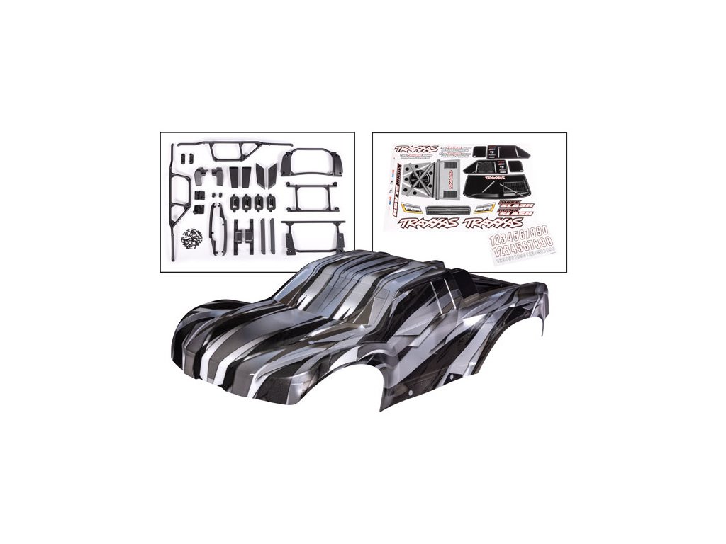 Traxxas karosérie Maxx Slash ProGraphix - s předtištěnou grafikou pro perfektní výsledek, vyžaduje barvení, kompletně oříznutá, s nanesenou přestřikovací fólií. Včetně vnitřního rámu, západek, ochranných plastových dílů a masky oken s archem samolepek.