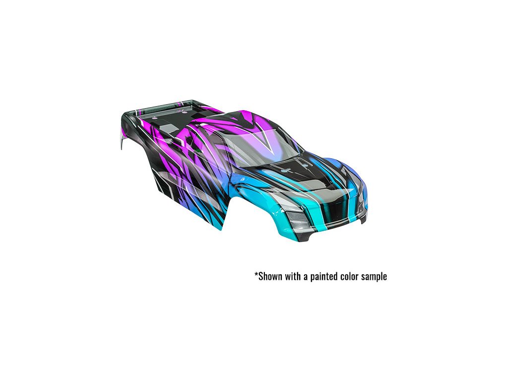 Náhradní díl pro RC modely aut Traxxas Mini Maxx: karosérie ProGraphix®. Grafika je vytištěna, vyžaduje aplikaci barvy a finální barvy, obsahuje obtisky, přední a zadní západky, montážní příslušenství. Pro montáž bez klipů.