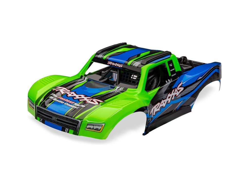 Náhradní díl pro RC model auta 1:12 Traxxas Mini Slash: karosérie Mini Slash zelená. Hotová, nabarvená a sestavená karoserie, včetně instalovaného kokpitu a bezsponkového držáku.