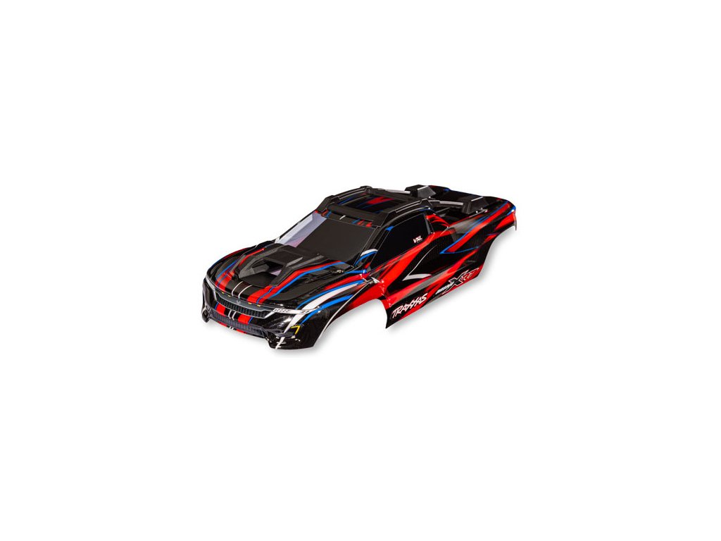 Traxxas karosérie Mini XRT červená. Hotová nabarvená karoserie, aplikované obtisky, včetně západek pro bezsponkové uchycení.