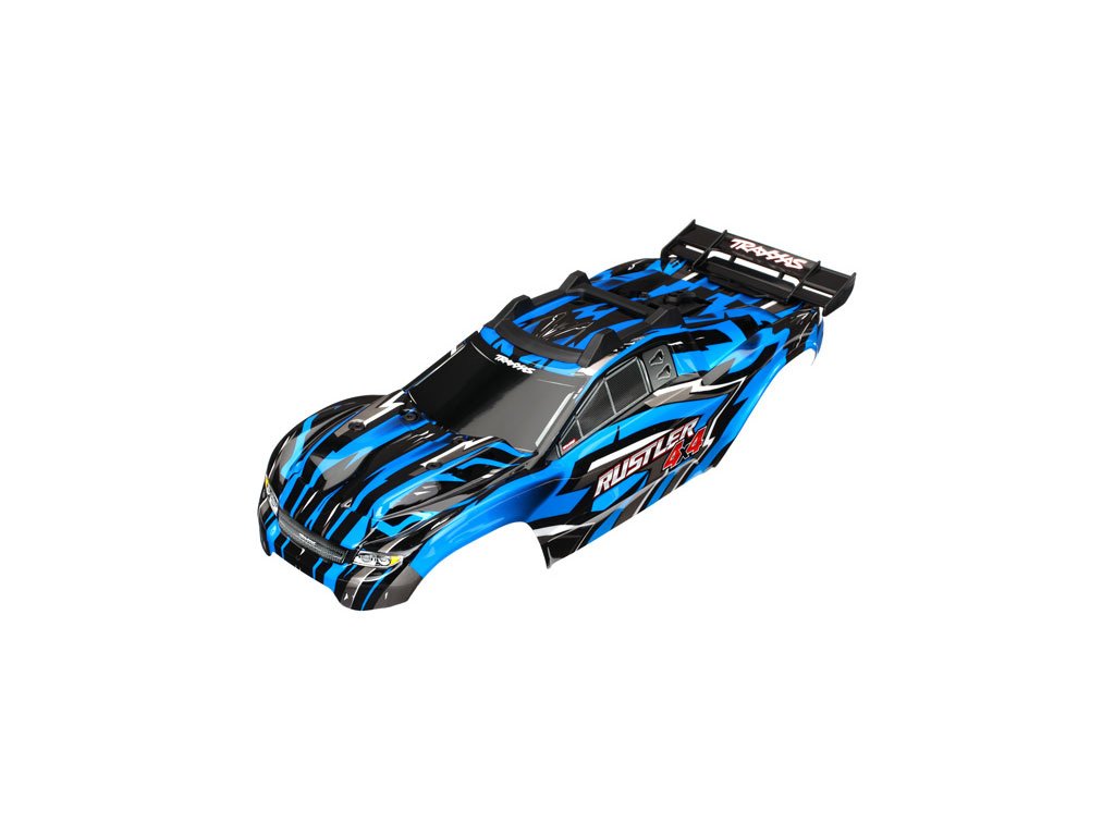 Náhradní díl pro RC modely aut Traxxas Rustler 4x4 VXL: karosérie modrá. Sestavená, nabarvená karoserie s aplikovanými polepy.
