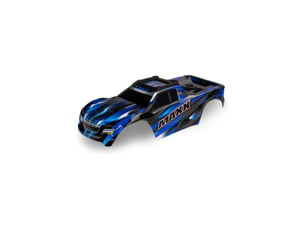Traxxas karosérie modrá Maxx s rozvor 352mm. Hotová, nabarvená karoserie, včetně vnitřního rámu a plastových dílů, aplikované polepy.