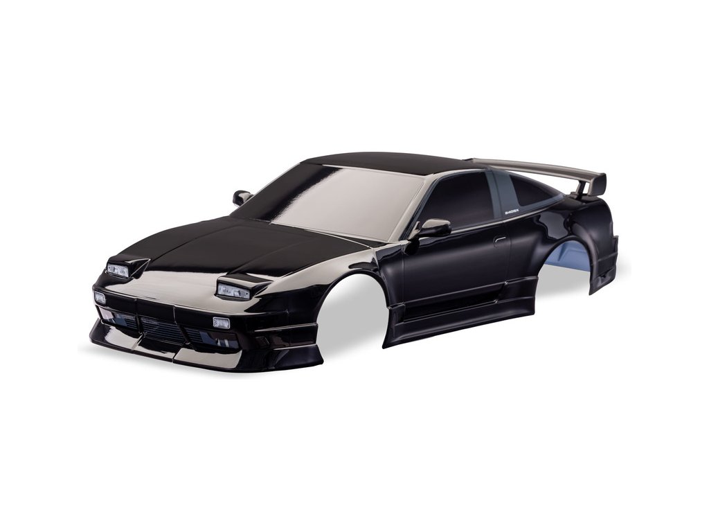 Traxxas karosérie Nissan 240SX černá. Hotová, nabarvená karoserie, včetně instalovaného bezsponkového držáku.