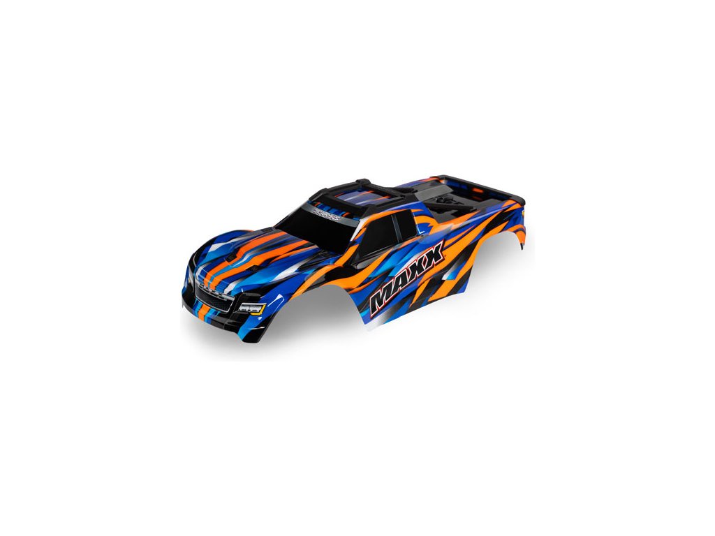 Traxxas karosérie oranžová Maxx s rozvor 352mm. Hotová, nabarvená karoserie, včetně vnitřního rámu a plastových dílů, aplikované polepy.