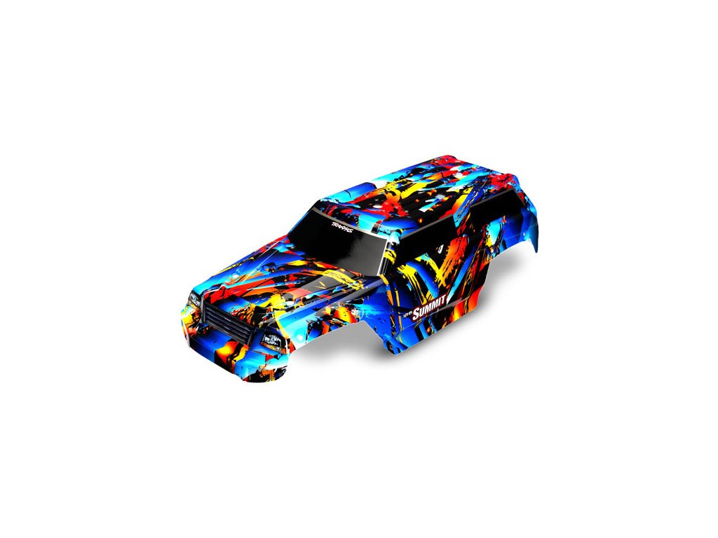 Náhradní karosérie pro RC model auta Traxxas Summit 1:16. Barevné provedení Rock and Roll.