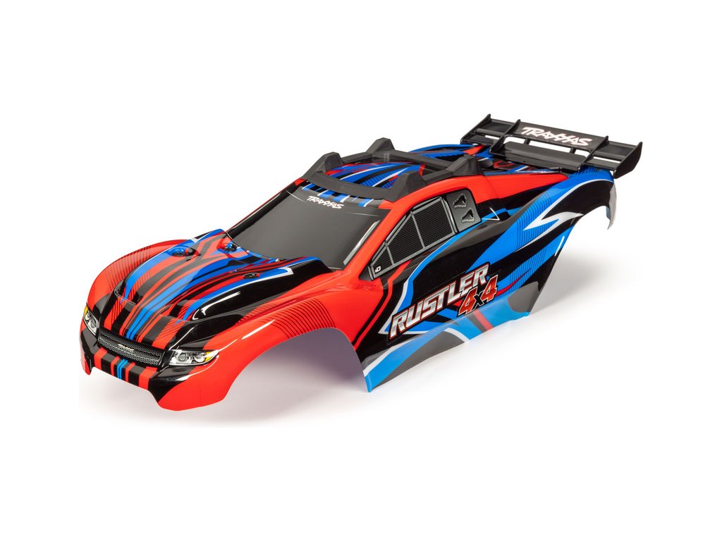 Hotová Traxxas karosérie Rustler 4X4 červeno-modrá, má kompletní a hotové zbarvení s aplikovanými obtisky. Tato odolná polykarbonátová karosérie má nejžhavější originální barevnou kreaci a je připravena k montáži na vaše auto Traxxas Rustler. Není třeba ořezávat karosérii nebo vrtat montážní otvory.