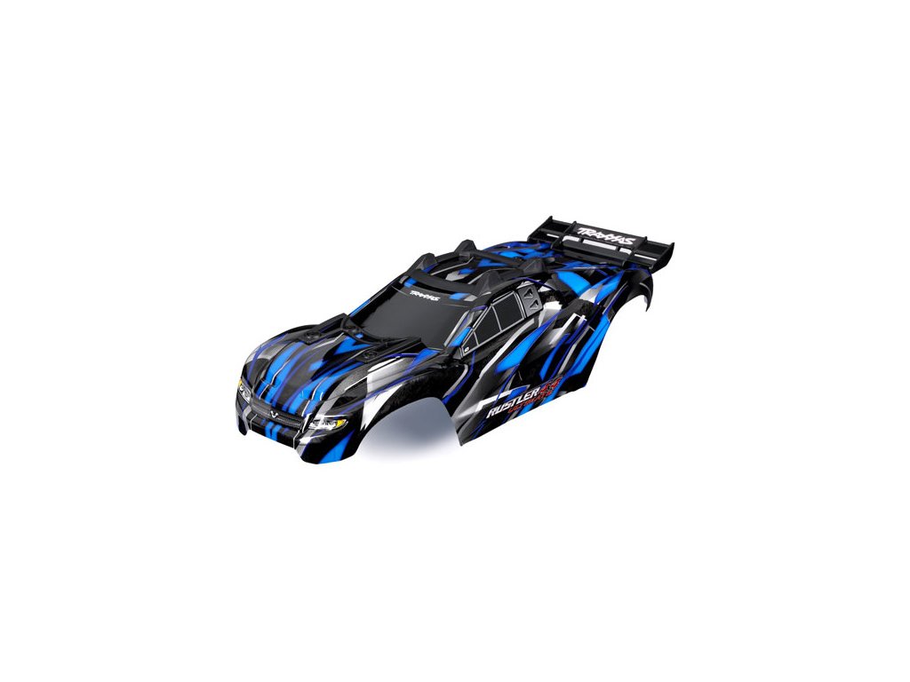 Hotová Traxxas karosérie Rustler 4x4 Ultimate modrá, má kompletní a hotové zbarvení s aplikovanými obtisky. Odolná polykarbonátová karosérie s bezsponkovým systémem uchycení.