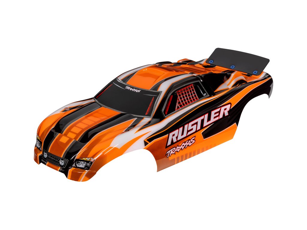 Hotová Traxxas karosérie Rustler 1:10 oranžová, má kompletní a hotové zbarvení s aplikovanými obtisky. Tato odolná polykarbonátová karosérie má nejžhavější originální barevnou kreaci a je připravena k montáži na vaše auto Traxxas Rustler 1:10. Není třeba ořezávat karosérii nebo vrtat montážní otvory.