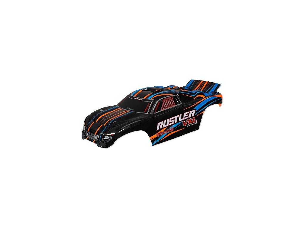 Traxxas karosérie Rustler VXL oranžová - nabarvená, s aplikovanými polepy.