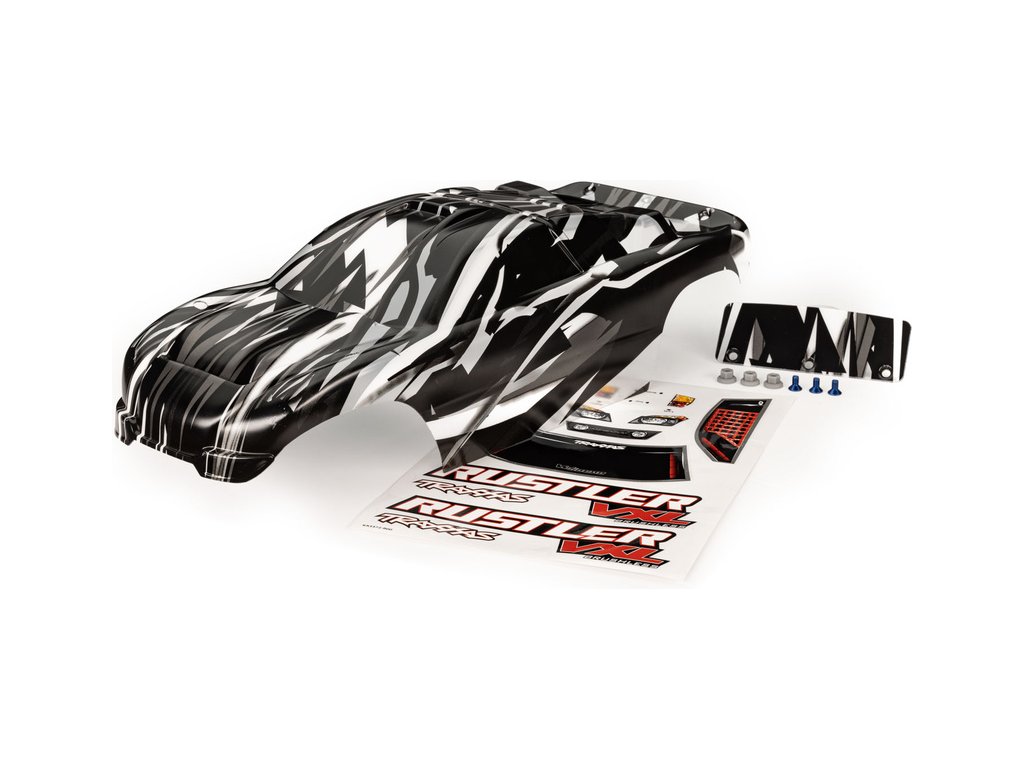 Traxxas karosérie Rustler VXL ProGraphix obsahuje karosérii s křídlem a obtiskovým archem. Vyberte si své vlastní zbarvení, použijte detailní grafiku k vytvoření vlastní barevné kreace. Okamžitý profesionální výsledek! Karosérie je kompletně oříznuta s předvrtanými otvory pro snadnou instalaci. Ochranná přestřikovací fólie.