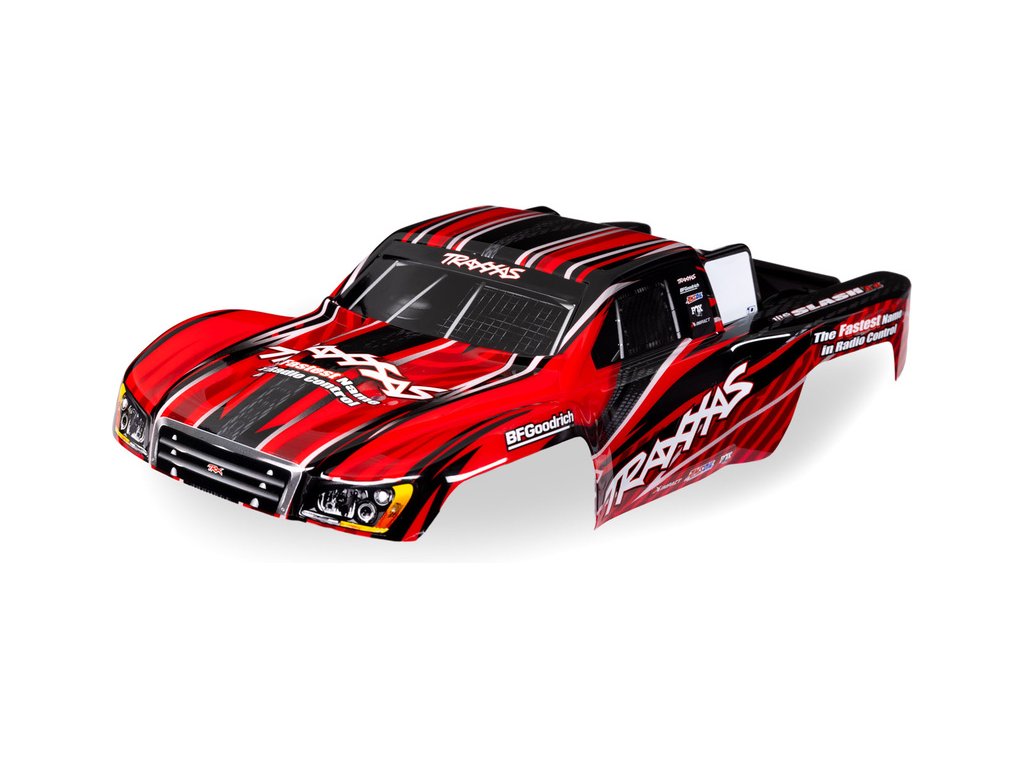 Traxxas karosérie Slash 1:16 červená - hotová nabarvená karoserie, z odolného polykarbonátu, aplikované obtisky. Pro Traxxas Slash 1:16.