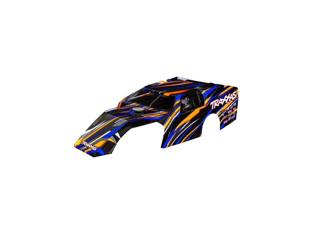 Traxxas karosérie Slash Mudboss modrá (bezsponková). Nabarvená, sestavená karoserie, včetně bezsponkového držáku pro upevnění.