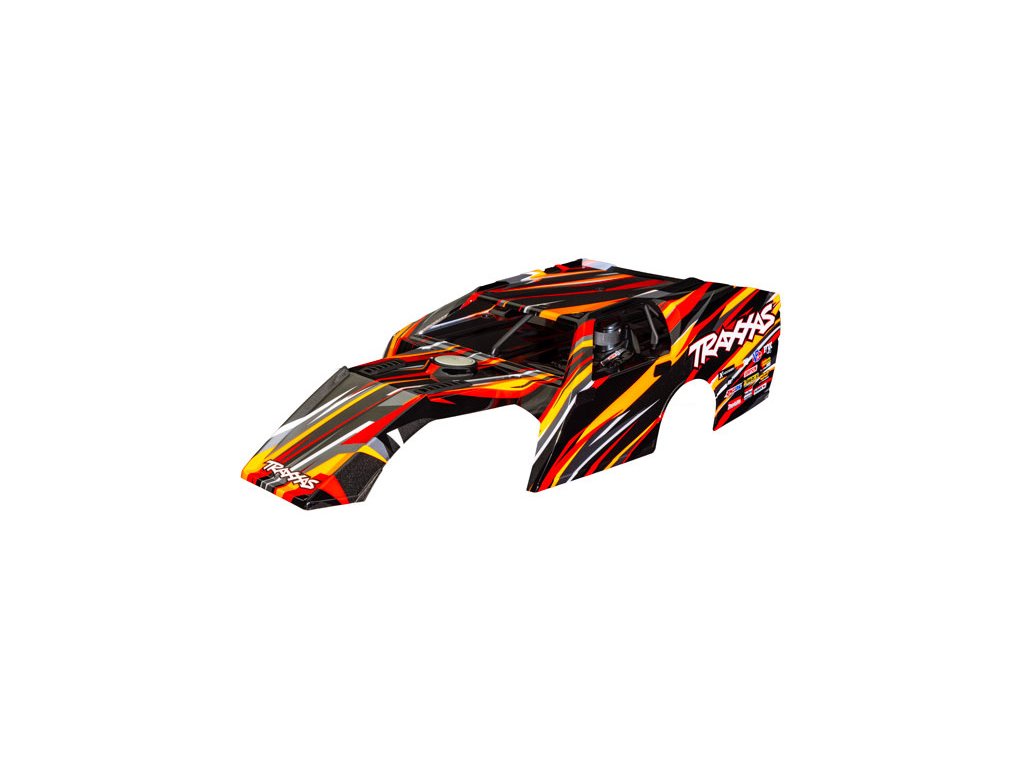 Traxxas karosérie Slash Mudboss oranžová (bezsponková). Nabarvená, sestavená karoserie, včetně bezsponkového držáku pro upevnění.