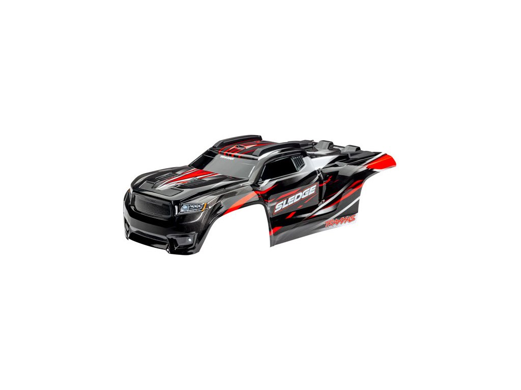 Nabarvená karosérie pro RC model auta Traxxas Sledge - červená. Karoserie je kompletní včetně, rámu karoserie.