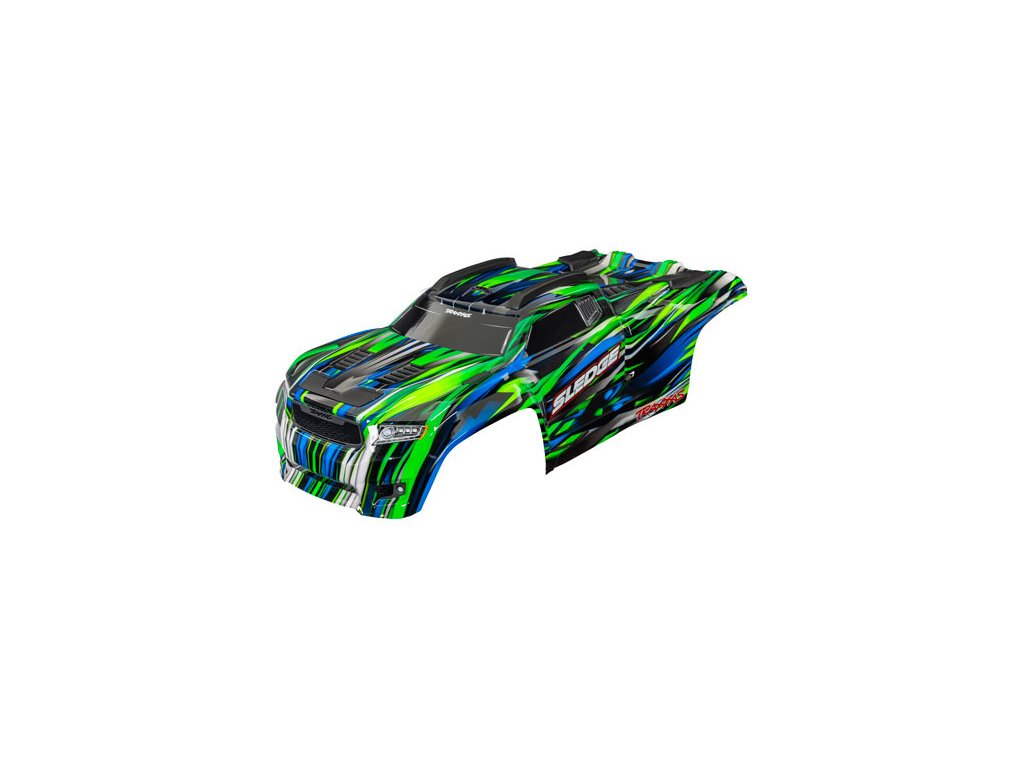 Nabarvená karosérie pro RC model auta Traxxas Sledge - zelená. Karoserie je kompletní včetně, rámu karoserie.