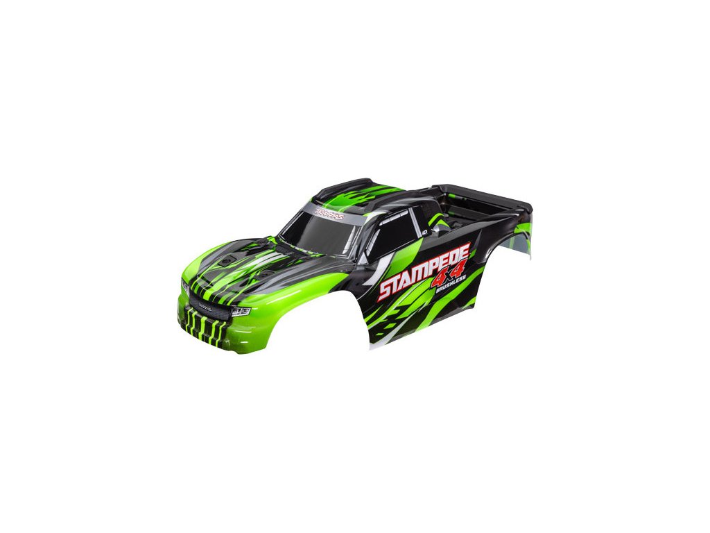 Traxxas karosérie Stampede 4X4 Brushless zelená (bezsponková). Nabarvená, sestavená karoserie, včetně bezsponkového držáku pro upevnění.