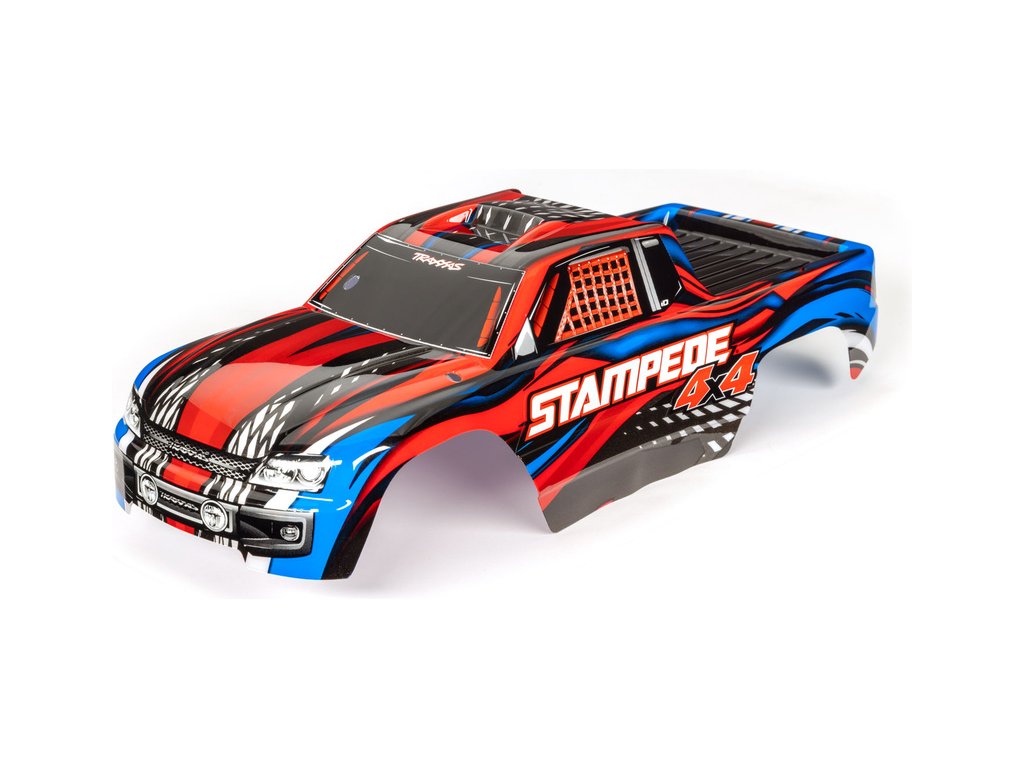 Hotová Traxxas karosérie Stampede 4X4 červená, má kompletní a hotové zbarvení s aplikovanými obtisky. Tato odolná polykarbonátová karosérie má nejžhavější originální barevnou kreaci a je připravena k montáži na vaše auto Traxxas Stampede 4WD. Není třeba ořezávat karosérii nebo vrtat montážní otvory.