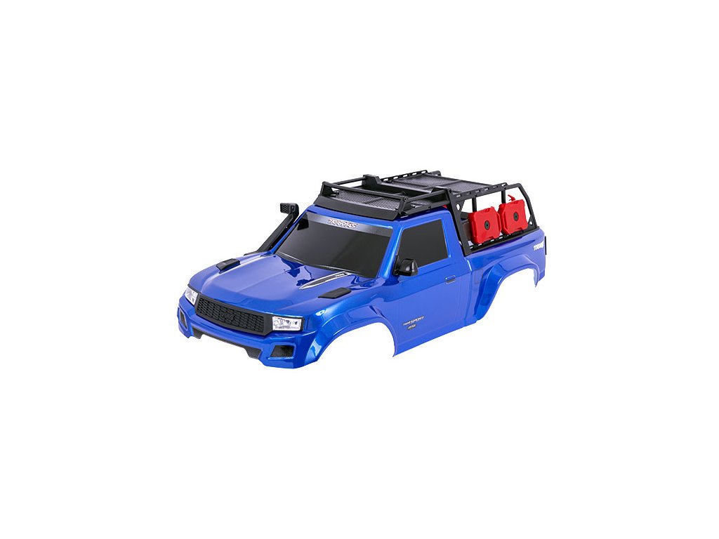 Traxxas karosérie TRX-4 Sport modrá. Kompletní nabarvená karoserie, včetně mřížky chladiče, zrcátek, klik dveří, stěrače, expedičního střešního nosiče a s bezsponkovým systémem uchycení. Určeno pro montáž na #8080X.