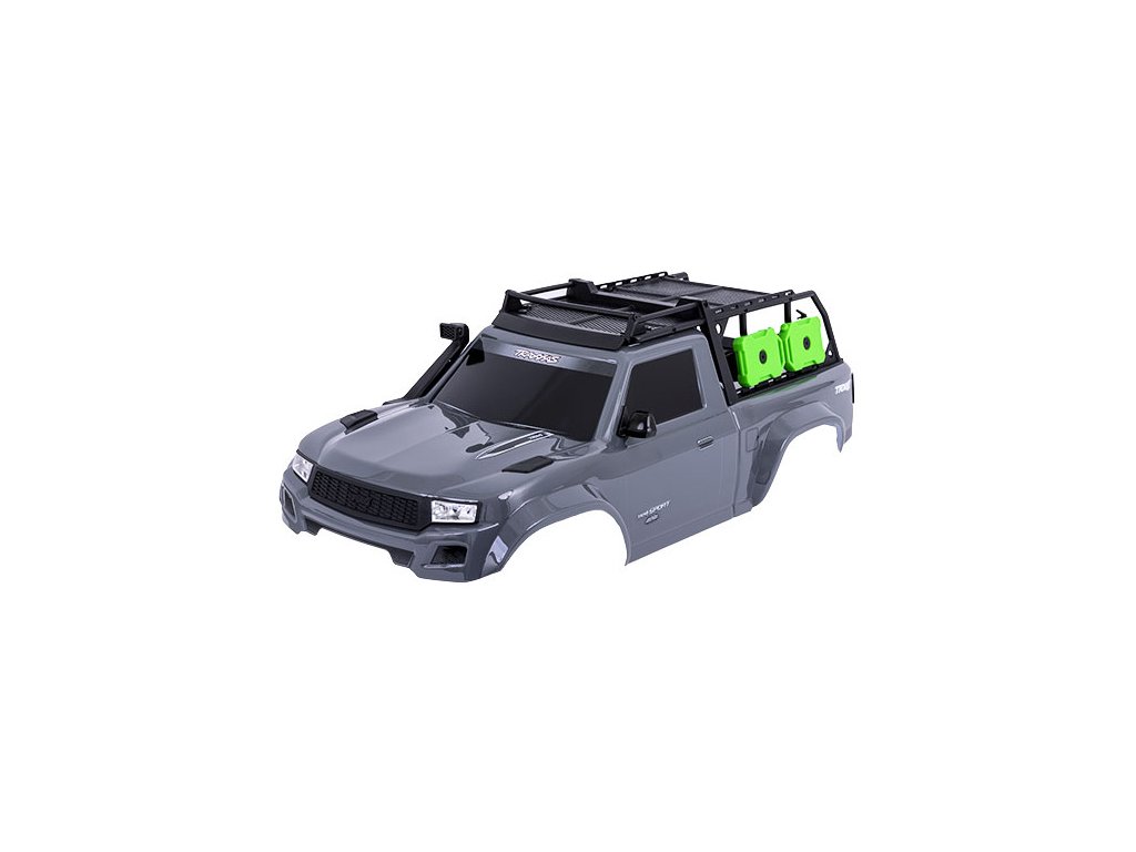 Traxxas karosérie TRX-4 Sport šedá. Kompletní nabarvená karoserie, včetně mřížky chladiče, zrcátek, klik dveří, stěrače, expedičního střešního nosiče a s bezsponkovým systémem uchycení. Určeno pro montáž na #8080X.
