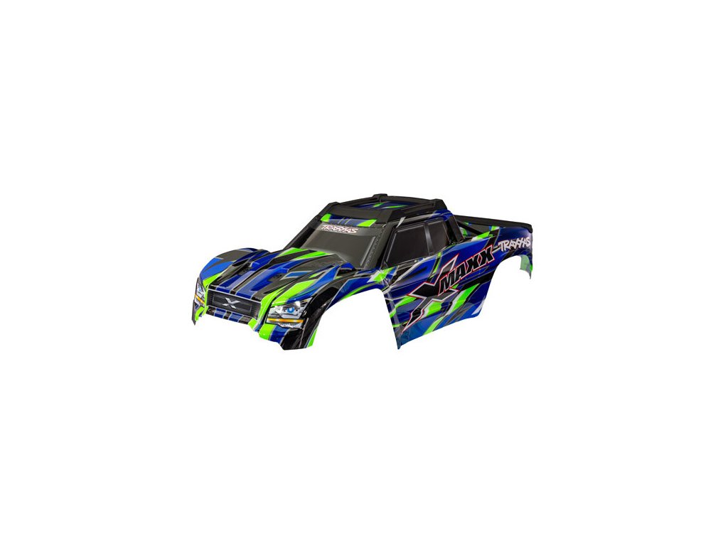 Traxxas karosérie X-Maxx zelená - hotová nabarvená karoserie, z odolného polykarbonátu, aplikované obtisky. Včetně vnitřního rámu a ochranných prvků. Pro Traxxas X-Maxx.