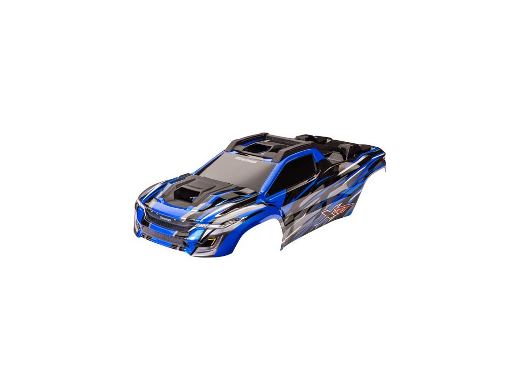 Traxxas karosérie XRT modrá. Nabarvená sestavená, včetně vnitřního rámu a střešních lyžin.