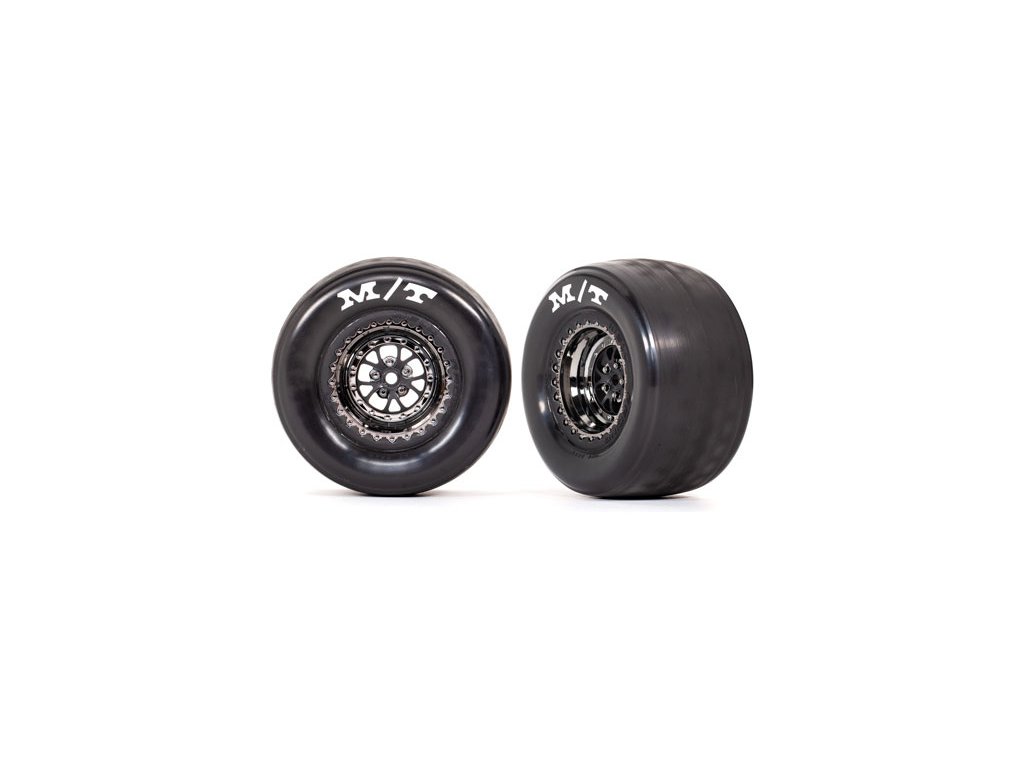 Traxxas kolo, disk Weld chromovaný černý (zadní) (2 ks) s pěnovou vložkou a nalepenými pneumatikami. Zadní dragsterová kola Mickey Thompson jsou replikou skutečných pneumatik. Speciálně vyvinutá směs pneumatik pro dlouhou životnost a maximální přilnavost.