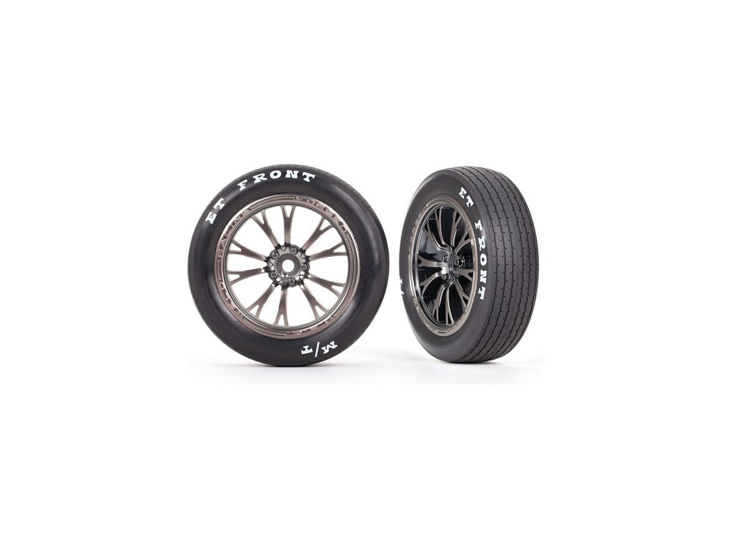 Traxxas kolo, disk Weld polomatný chromově černý (přední) (2 ks) s pěnovou vložkou a nalepenými pneumatikami. Přední dragsterová kola Mickey Thompson jsou replikou skutečných pneumatik. Speciálně vyvinutá směs pneumatik pro dlouhou životnost a maximální přilnavost.