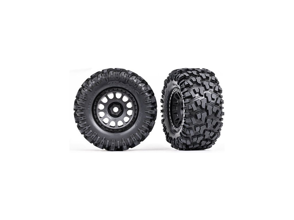 Traxxas kolo, disk XRT Race, pneu Maxx AT tires (pár - levý a pravý). Pneumatiky Maxx ® AT 8,0" x 4,0" s agresivním vzorkem běhounu. Nalepené na matně černá kola XRT ™ s pěnovými vložkami. Unašeč 24 mm drážkovaný šestihran.