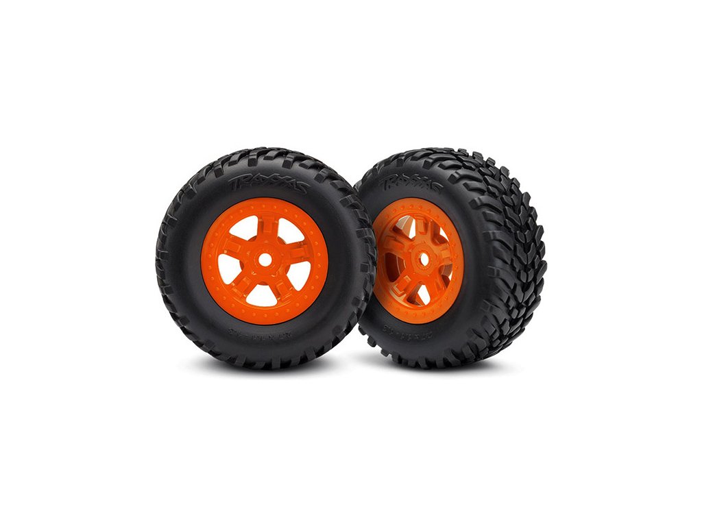 Kompletní univerzální kola pro RC auta. Pěti-paprskový disk SCT v oranžovém provedení s nalepenými pneumatikami SCT off-road (2ks v balení).