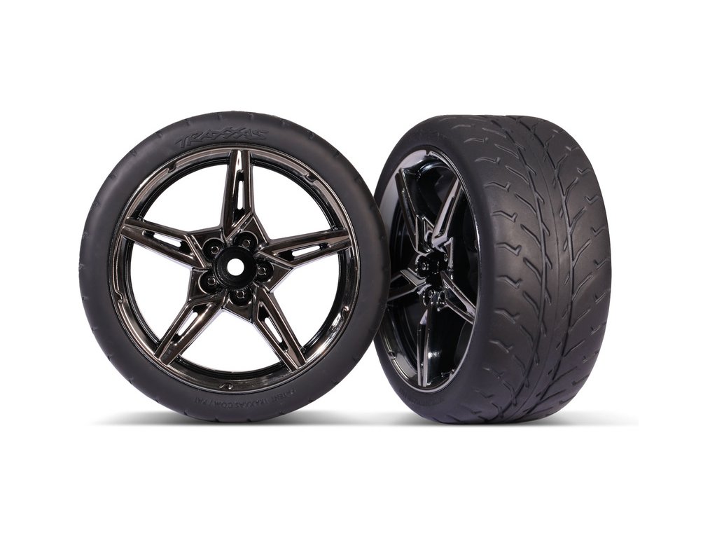 Traxxas kolo 1.9", černě chromovaný disk, pneu Response, (2 ks) (zadní) - kompletní kola s nalepenou pneumatikou. Průměr kola 72mm, šířka 32mm, offset 15mm.