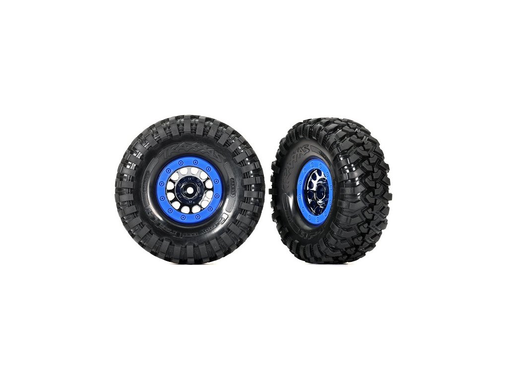 Traxxas kolo 1.9", disk Method 105 Beadlock saténový černý chrom, beadlock modrý, pneu Canyon Trail (pár)