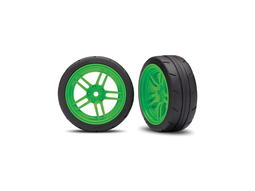 Kompletní přední kola pro RC modely auta Traxxas 4-Tec 2.0. Zelené disky Split-spoke s pneumatikami Response (2 ks v balení).