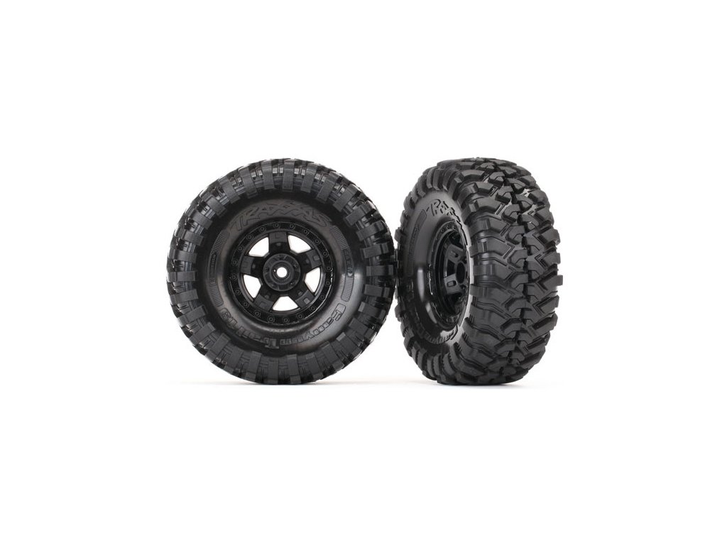 Kompletní univerzální kola pro RC modely aut TRX-4. Černé Disky TRX-4 Sport s pneumatikami Canyon Trail (2 ks v balení).