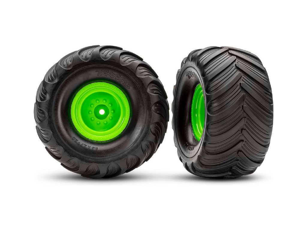 Traxxas kolo 2.0/3.0", disk zelený offset 19mm, pneu Terra Groove (pár)