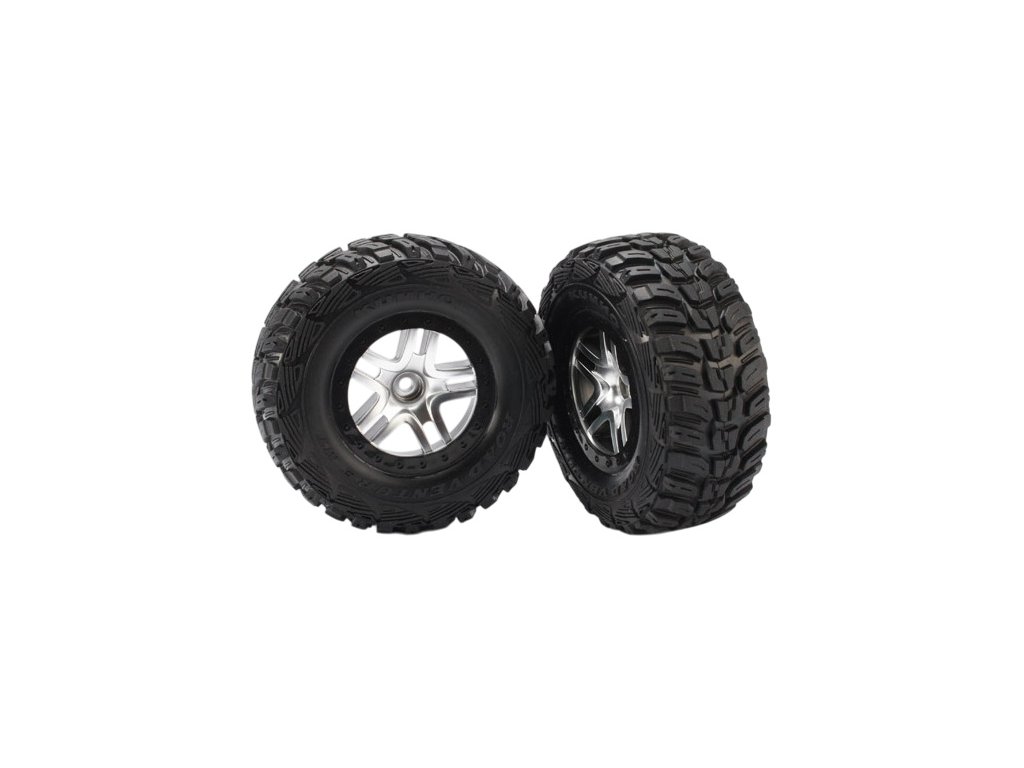 Kompletní přední kola pro 2WD auta Traxxas Slash. Saténové disky Split-Spoke s černými ráfky a nalepenými pneumatikami Kumho s vložkou (měkká směs). Rozměr disku 61/81x42 mm. Celkový rozměr 110x46 mm. Unašeč je šestihran 12mm s offsetem 22 mm.