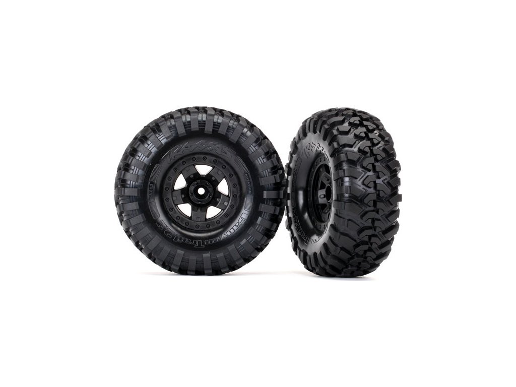 Kompletní univerzální kola pro RC modely aut TRX-4. Černé Disky TRX-4 Sport s pneumatikami Canyon Trail (2 ks v balení).