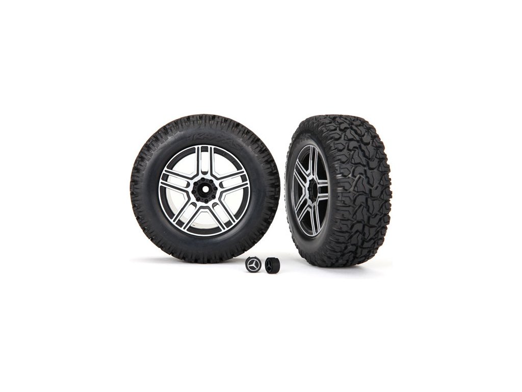 Kompletní univerzální kola pro RC modely aut TRX-4. Chromové disky s pneumatikou pro TRX-4 Mercedes-Benz® G 500 ( 2 ks v balení ). Rozměr disku ø110/144x80 mm, rozměr pneumatiky ø207x100 mm. Unašeč je šestihran 24 mm s offsetem 50 mm.